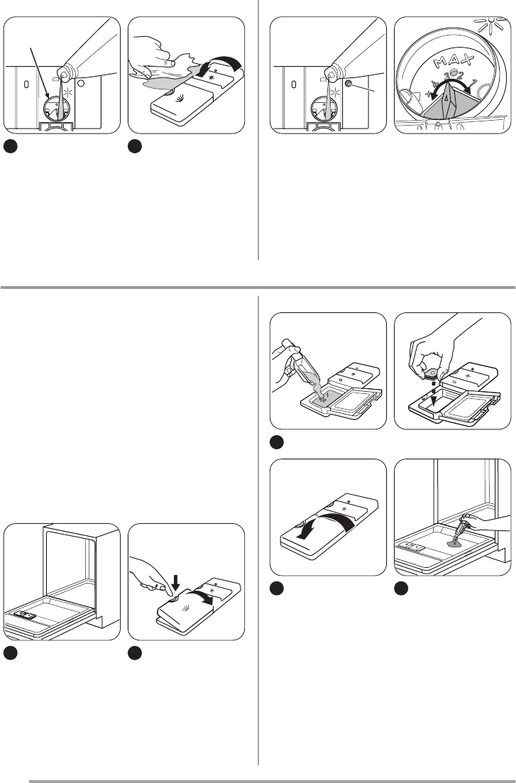 •Jeśli świeci się wskaźnik soli, napełnić zbiornik